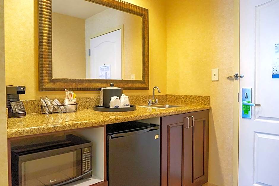 This room features a flat-screen TV with cable channels. A small refrigerator, coffee maker, and microwave are provided as well. Guests will enjoy the comfort of a furnished expanded seating area with sofa bed. Additional work space is provided.